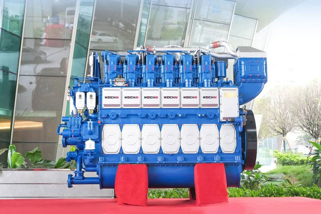 潍柴WH20甲醇船舶动力,曾获得国内首张柴油微喷引燃单一甲醇燃料发动机型式认可证书及排放证书。潍柴全系列甲醇船舶动力,具备高效、低碳、节能的优势,可适配工程船、货船、滚装船、液化船等多种船舶,为客户提供系统集成解决方案。